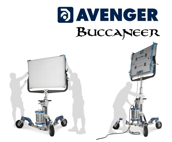 Avenger Buccaneer B7030FF wind-up stand. Heavy duty, max height 3 m, load capacity up to 30 kg. Strong, reliable, and professional.
