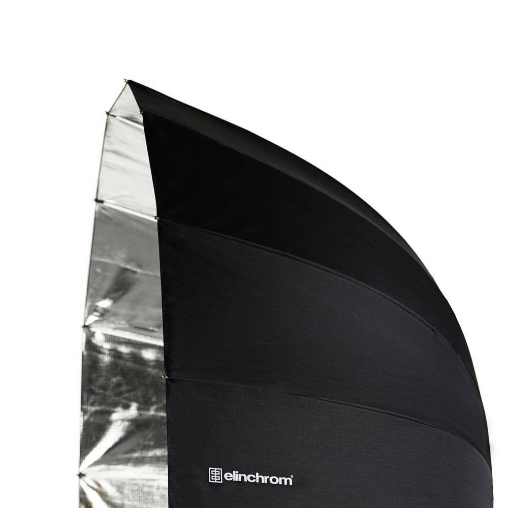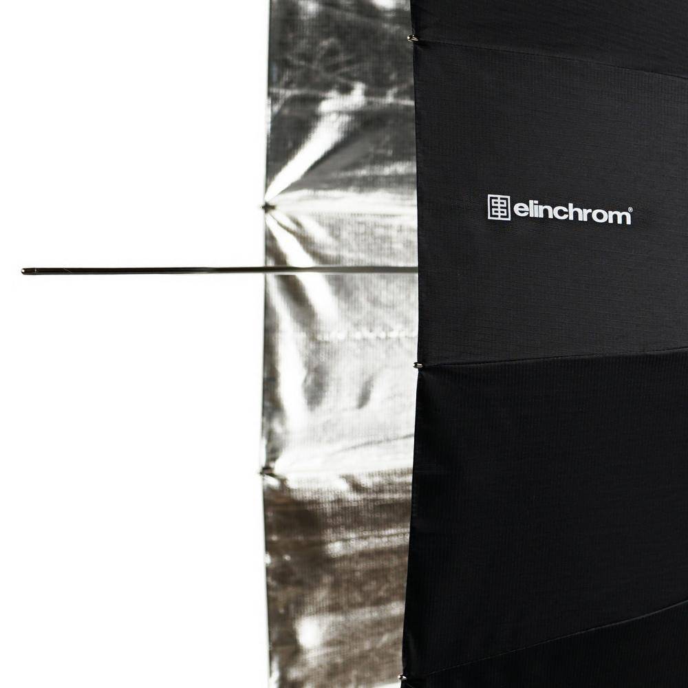 Deze paraplu van Elinchrom heeft een sterk reflecterend zilveren interieur, ideaal voor het creëren van zachte schaduwen met scherpe details.