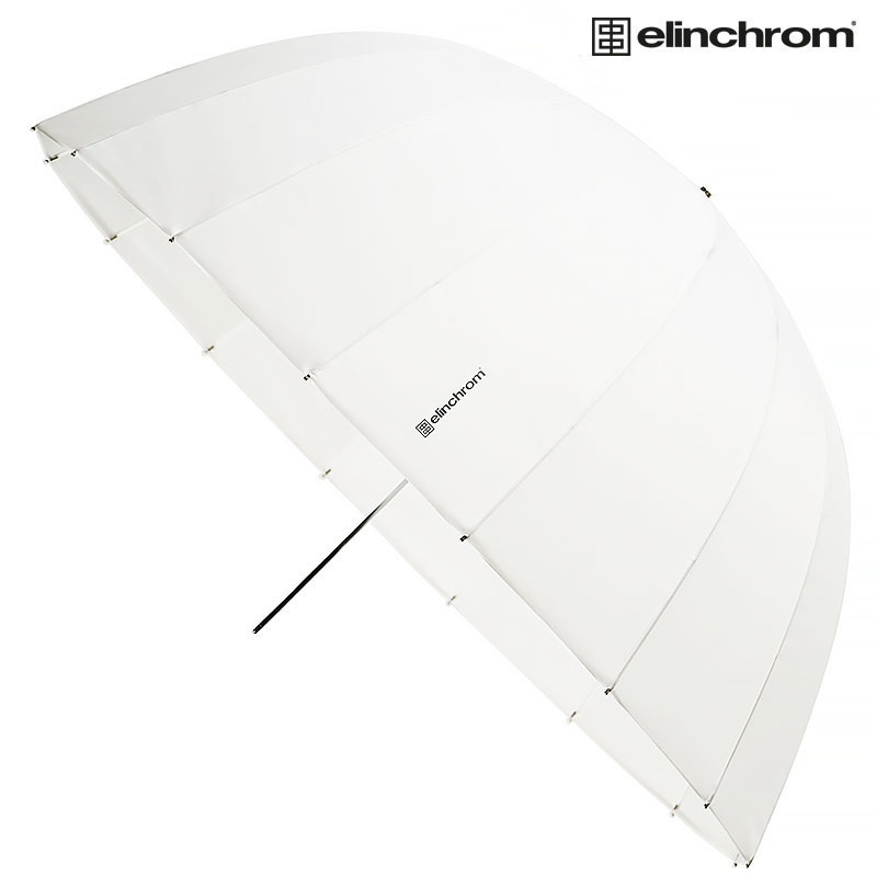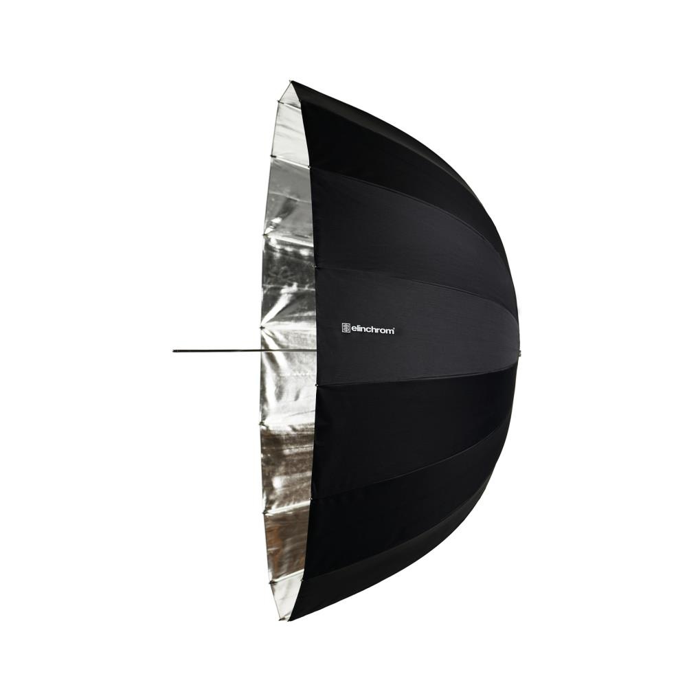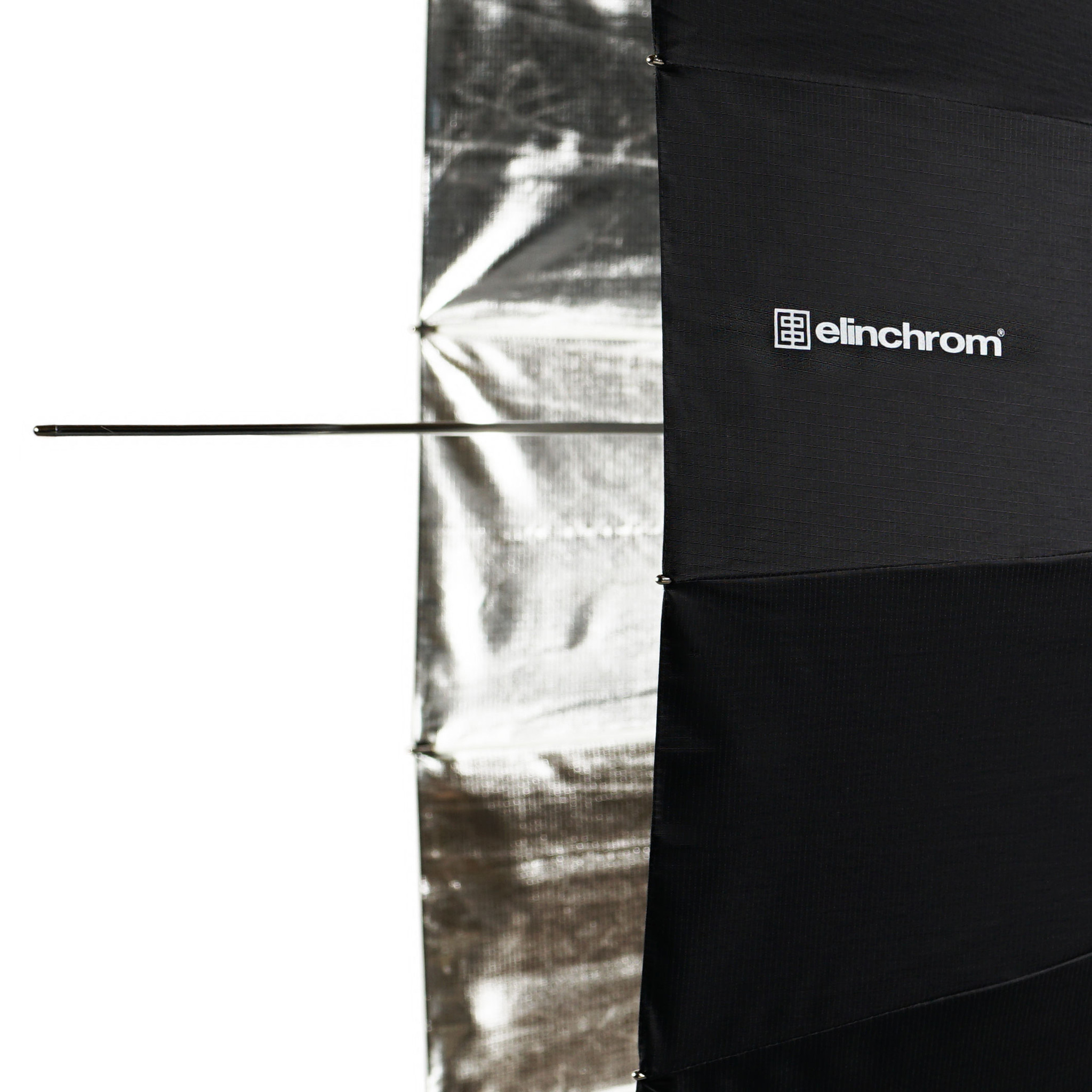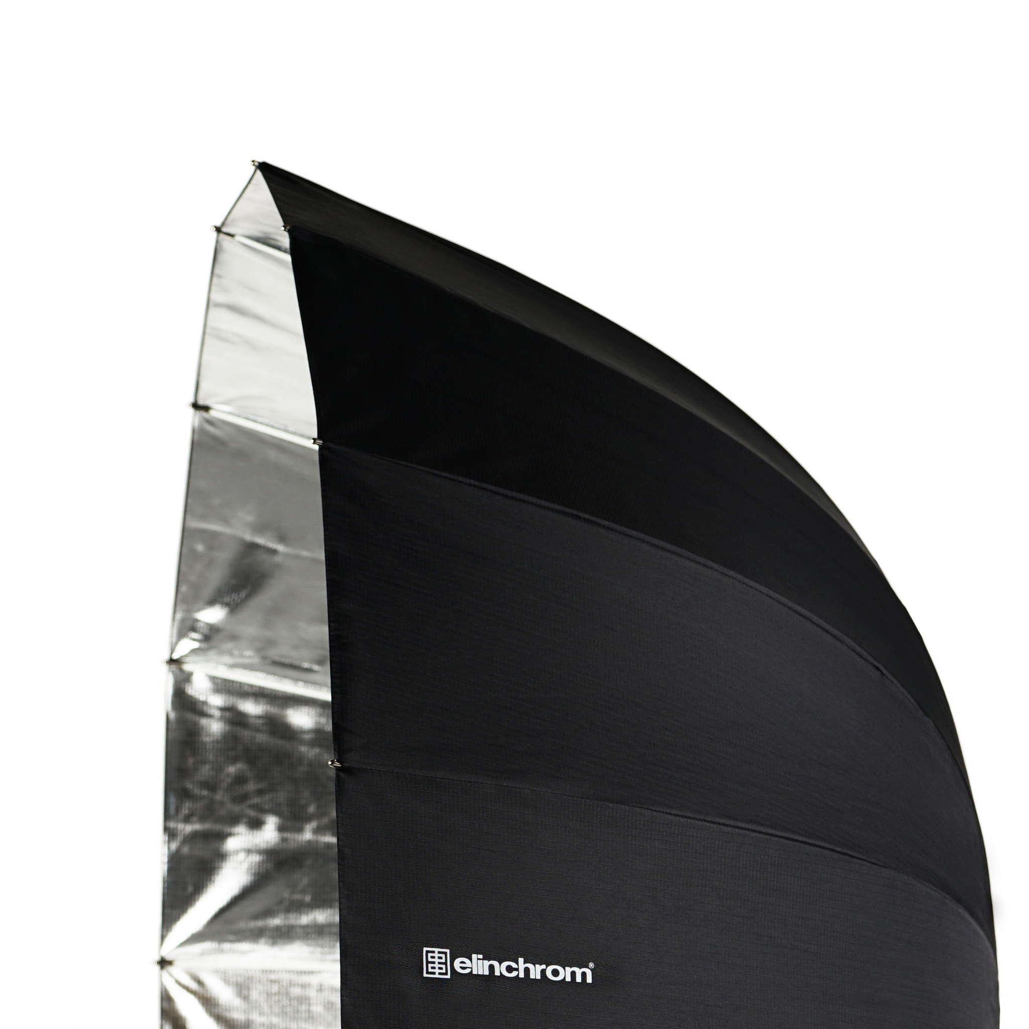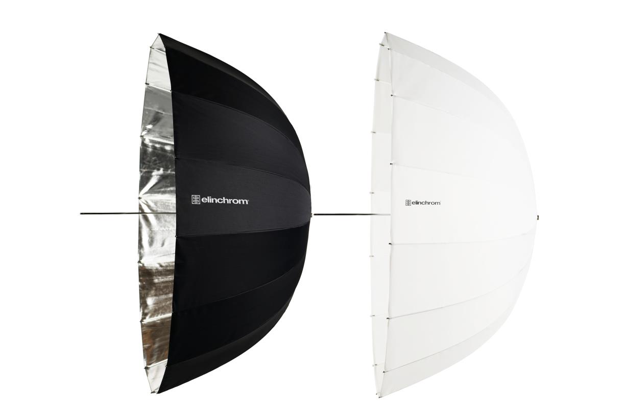 Twee diepe paraplu's van Elinchrom met een diameter van 105 cm in zilver en doorschijnend. Zilver voor meer contrast en intense verlichting.