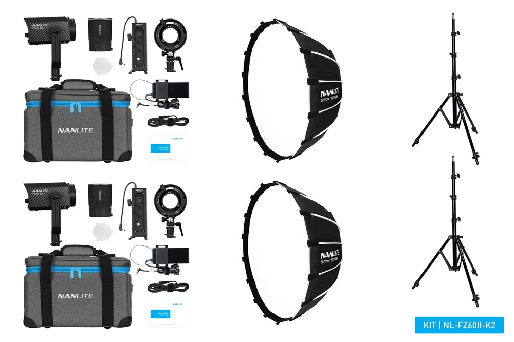 Deze set bestaat uit twee Nanlite Forza 60 II LED daglicht videolampen, compleet met stsatieven, lichtvormers en koffer.